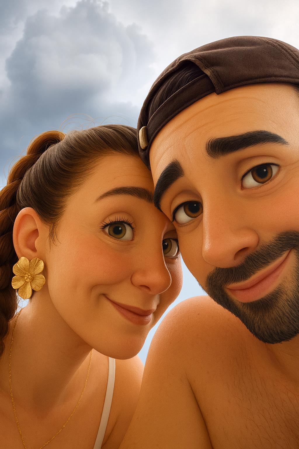 Il nostro ritratto dal selfie in spiaggia è venuto benissimo! 🌊 Semplice, ma con tutti i dettagli dei nostri volti. Lo adoriamo!